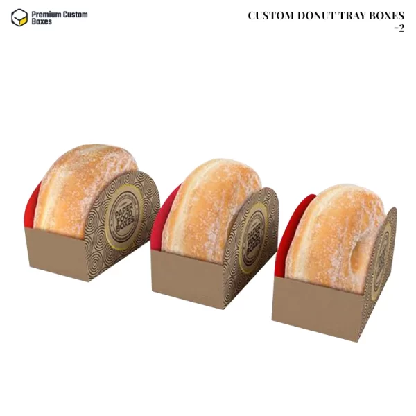 Among all the bakery items, donuts are one of the diverse options that are filled with jellies, custard, and various other add-ons. This delicious pastry is liable to microbial contamination which is why it is necessary to pack it in donut tray boxes. These boxes make the product accessible while providing high-end protection.  From PremiumCustomBoxes, you can get boxes made with high-end material, elegant and fade-resistant prints, and several add-on options. Not only this but to sustain the attractiveness of boxes, we coat them with multiple finishings that give a graceful look to the boxes.  Brands that want to promote themselves with an effective marketing strategy without draining their financial resources must put their hands on custom printed donut boxes. The boxes are printed with the logos of brands and act as an accurate and effective branding tool.
